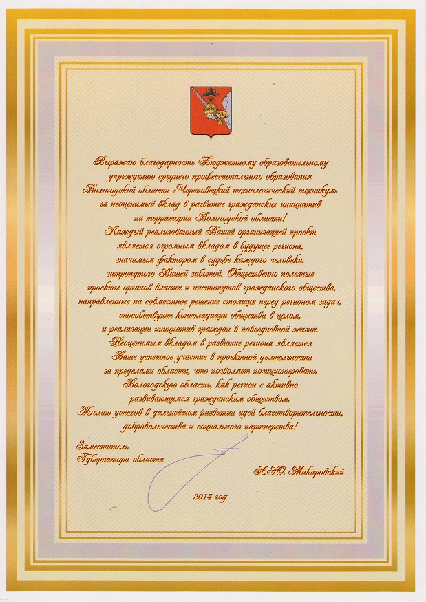 Благодарственное письмо