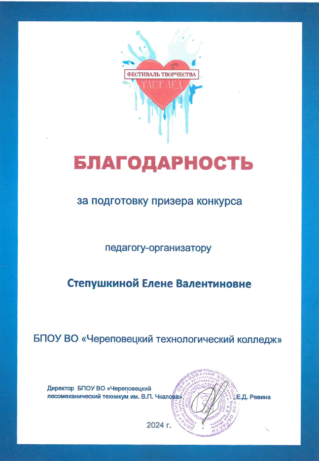 Благодарность Степушкиной Е.В.