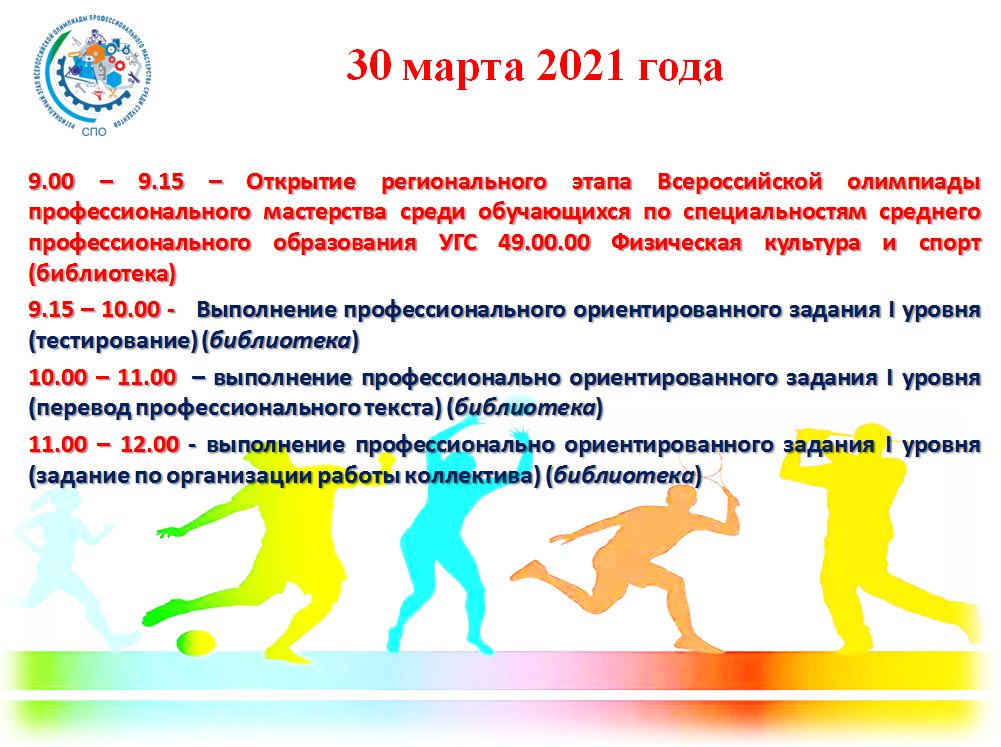 18 марта 2021года состоялся 1 тур регионального этапа Всероссийской олимпиады профессионального мастерства среди обучающихся по специальностям УГС 43.00.00 Сервис и туризм. В 1 туре приняли участие 12 студентов из 6 профессиональных образовательных организаций Вологодской области, которые реализуют образовательные программы среднего профессионального образования: Туризм, Гостиничный сервис и Гостиничное дело.